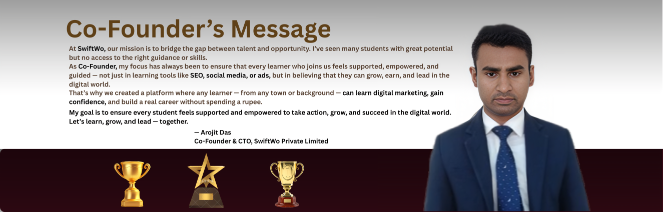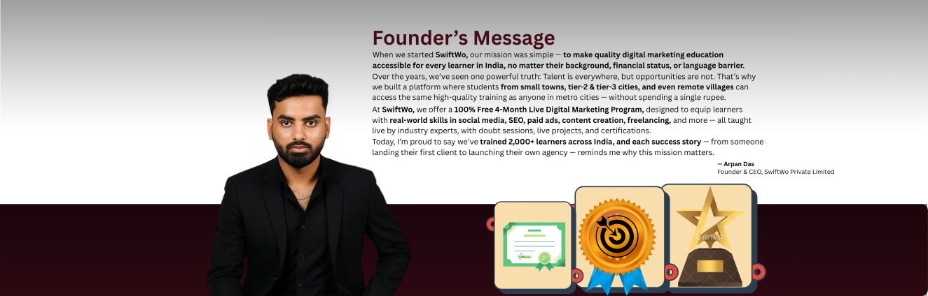 Empowering thousands of learners with 100% free live training, SwiftWo blends expert-led guidance with real-world tools to deliver job-ready digital marketing skills.
